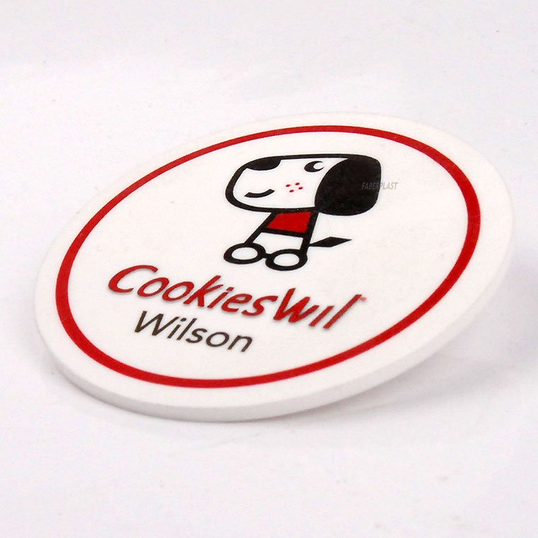 Badge plexiglas faite quant à la marque de nourriture naturelle pour animaux de compagnie COOKIESWIL.