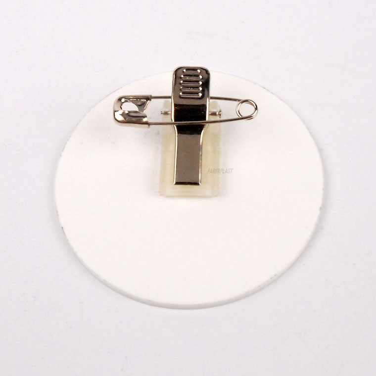 Fabriqué avec du blanc transparent plaques acryliques luminosité (Plexiglas-PMMA) décoré avec le logo de l'impression digitale. Il comprend la broche clip / de sécurité pour le placement dans des vêtements de toutes sortes.