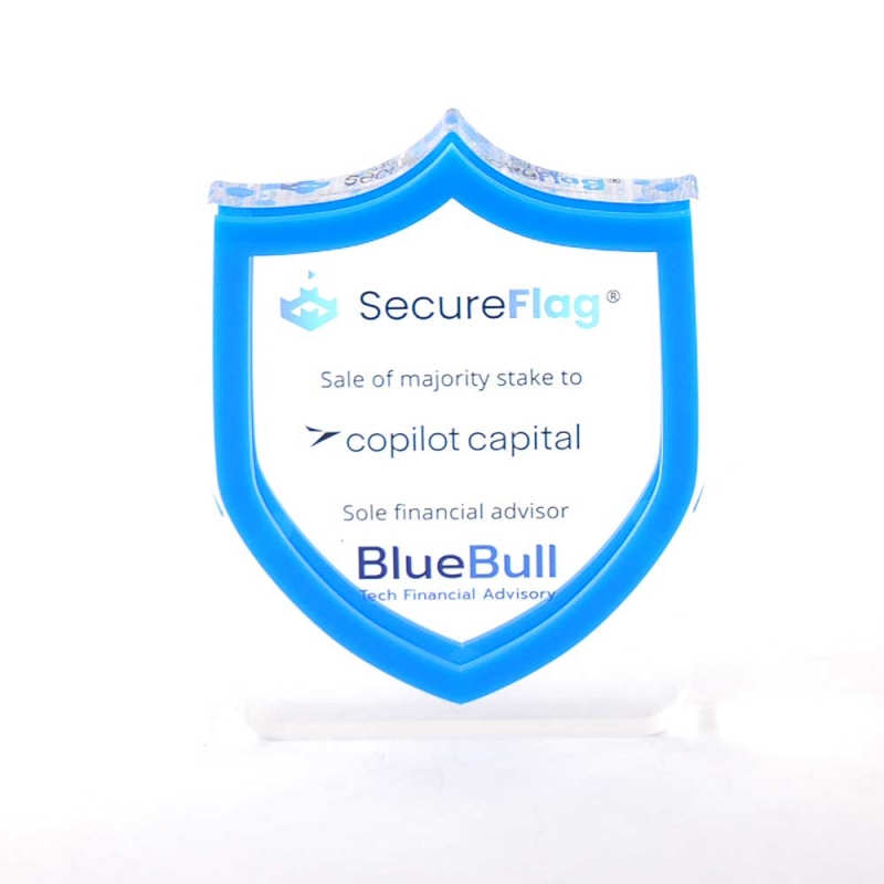 Bloc de plexiglas acrylique réalisé ad hoc pour la marque SECURE FLAG en collaboration avec BLUE BULL.