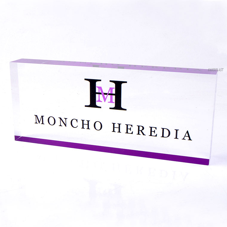 En Faberplast nous sommes des fabricants, nous pouvons faire toutes sortes de blocs, des pièces spéciales pour les trophées et récompenses, cadeaux d'entreprise et d'autres fins. Nous avons le méthacrylate (Plexiglas-PMMA) de haute qualité dans différentes épaisseurs, couleurs et finitions. La forme ou la forme que vous avez besoin et des techniques d'impression avancées sans adhésifs ou vinyle, opaque, translucide, et plus de couleurs métallisées.
