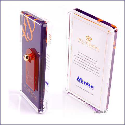Plexiglas de comptoir et de table bloc format pour OCCIDENTAL chaîne dhôtel Hôtels. Fabriqué en plexiglass transparent (PMMA-méthacrylate) et étiquetés avec interne impression numérique haute résolution. Comprend les autres plexiglas et accessoires en laiton.