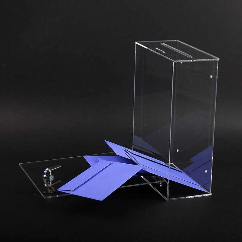 Chez Faberplast® nous sommes fabricants, si vous avez besoin de Boîtes à Idées en plexiglas sur mesure (Plexiglas®-PMMA), contactez-nous et nous vous ferons parvenir rapidement votre budget. Nous travaillons n'importe quelle quantité et le tout en un temps record. Et maintenant, nous fabriquons également nos produits avec du méthacrylate 100 % recyclé.