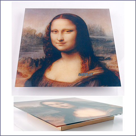 Cadre plexiglas pour images imprimées numériquement. Fait comme suspendu le format de plaque acrylique plexi transparent (plexiglas PMMA) et imprimé à laide dadhésifs dimpression numérique directe. Cadre en bois à larrière.