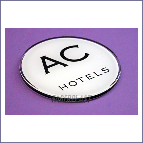 En-dessus pour verres AC HOTELES, produit en Méthacrylate transparent. Avec decoration de logotype. Contactez-nous sur: comercial@faberplast.net pour obtenir votre devis personnalisé.