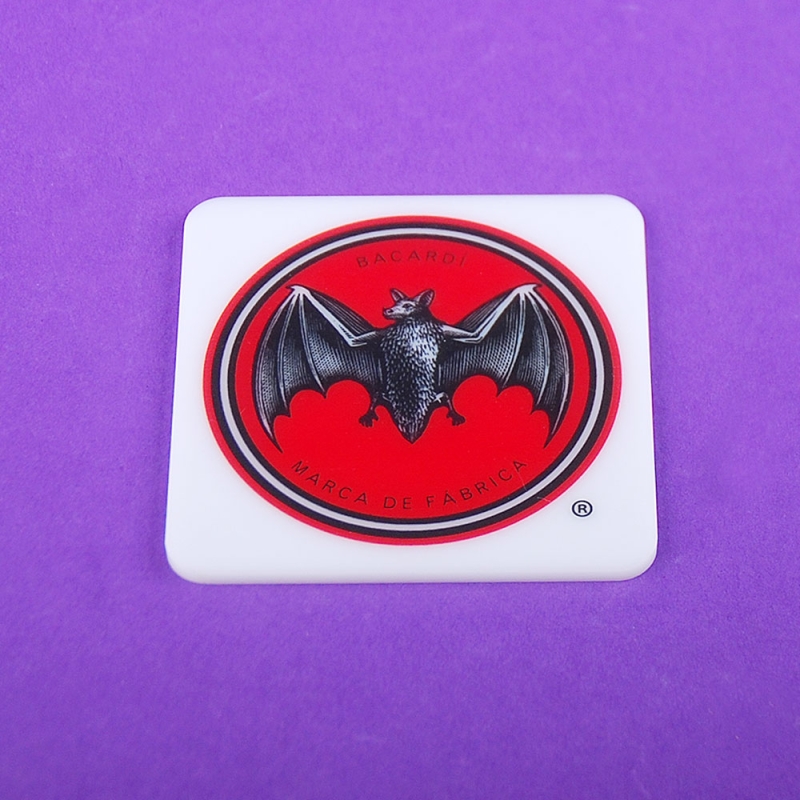 Sous-verres imprimés en méthacrylate réalisés ad-hoc pour la marque BACARDI.