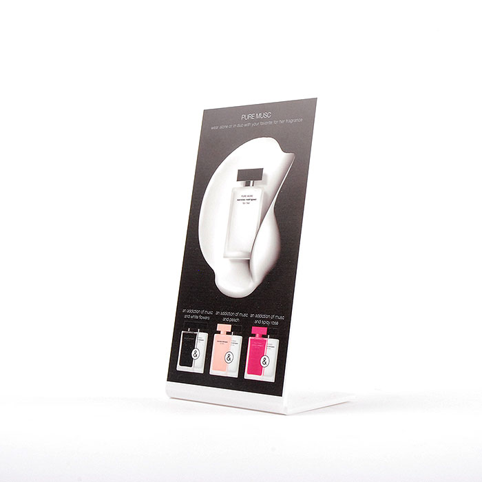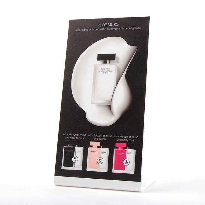 Présentoir en méthacrylate fabriqué sur demande et sur demande de la marque PURE MUSC.