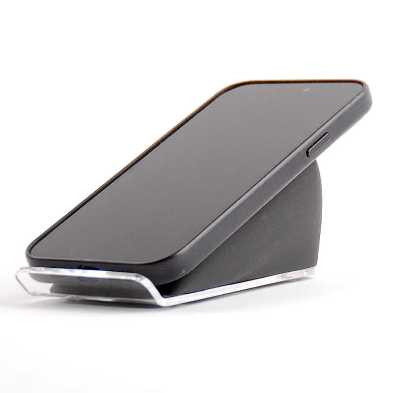 Support en plexiglas conçu pour accueillir tous les types de téléphone.