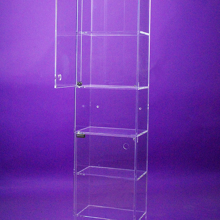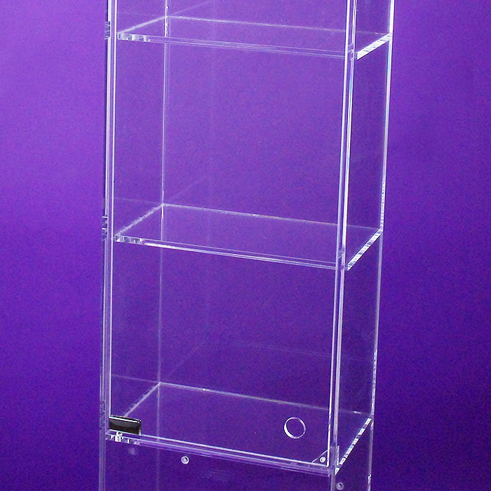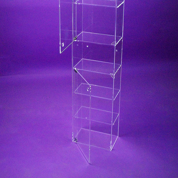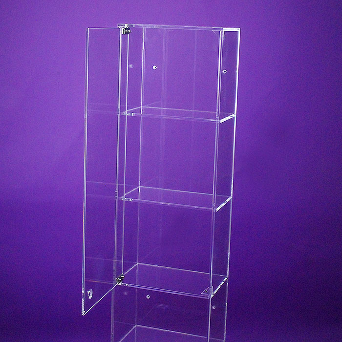 Fabriqué avec des plaques de méthacrylate transparentes de forte épaisseur (Plexiglas-pmma), coins de renforcement métalliques. Design minimaliste élégant, sans boutons ni poignées. Fabriqué dans un seul module avec 8 trous.