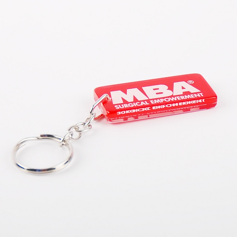 Porte-clés en méthacrylate réalisé sur mesure pour l'entreprise : MBA SURGICAL EMPOWERMENT.