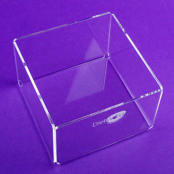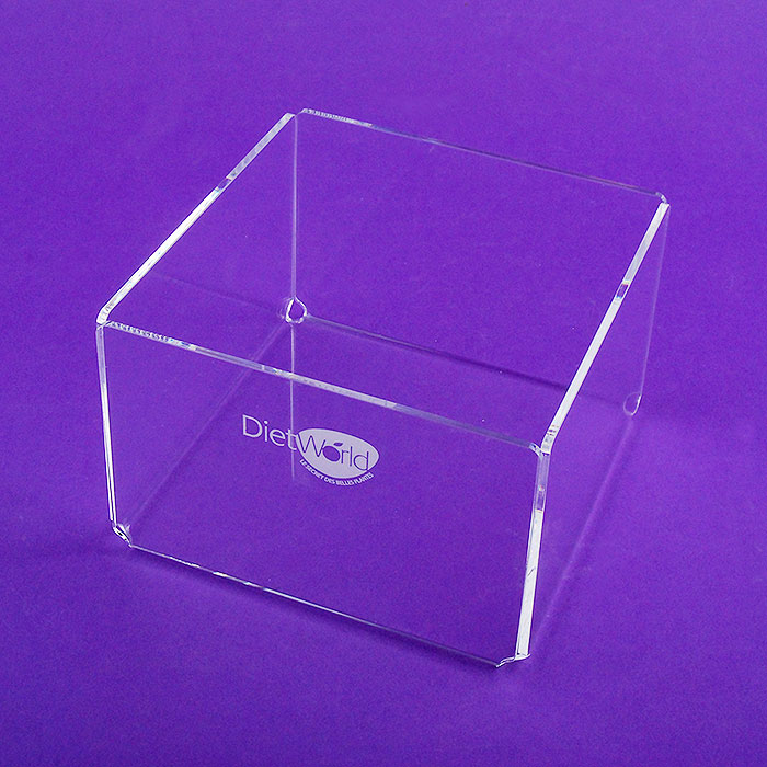 Porte Serviettes table en méthacrylate fabriqué de manière personnalisée pour la marque DIET WORLD.
