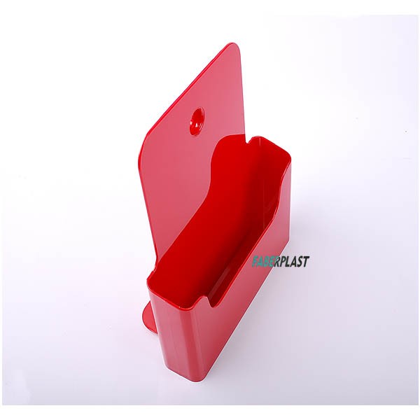 Porte-brochure rouge A4 avec 1 caisse, conçu pour être placé sur comptoir ou s’ accrocher sur n'importe quelle surface.