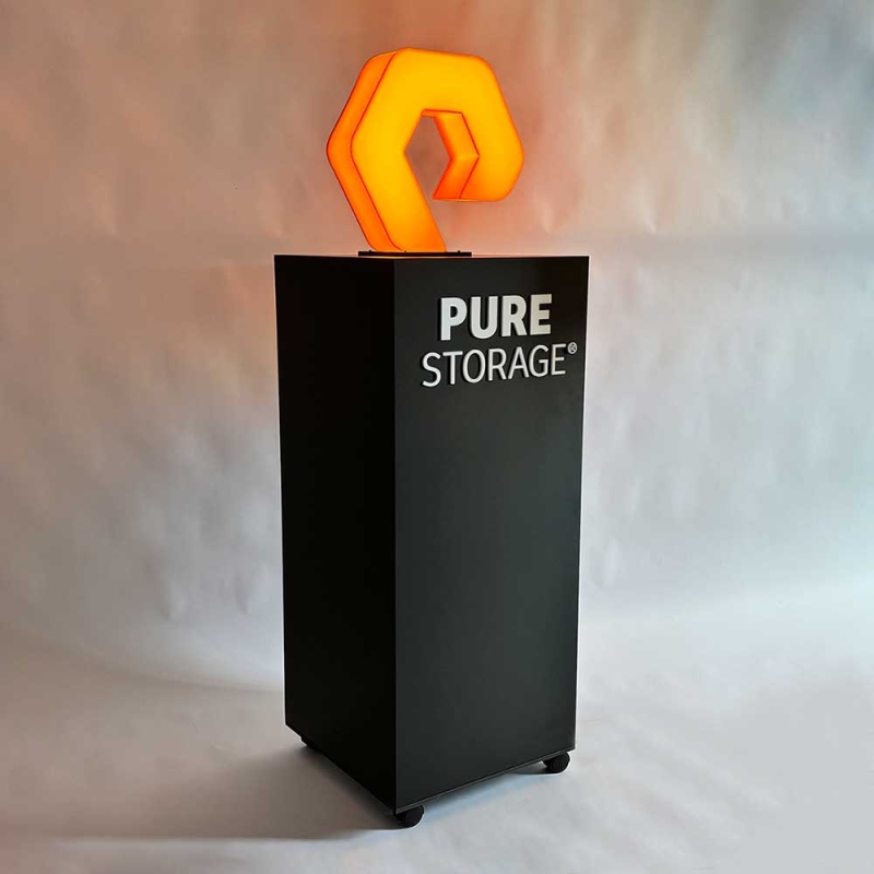 Présentoir d'entreprise avec logo lumineux – Colonne de signalétique pour événements et espaces commerciaux.