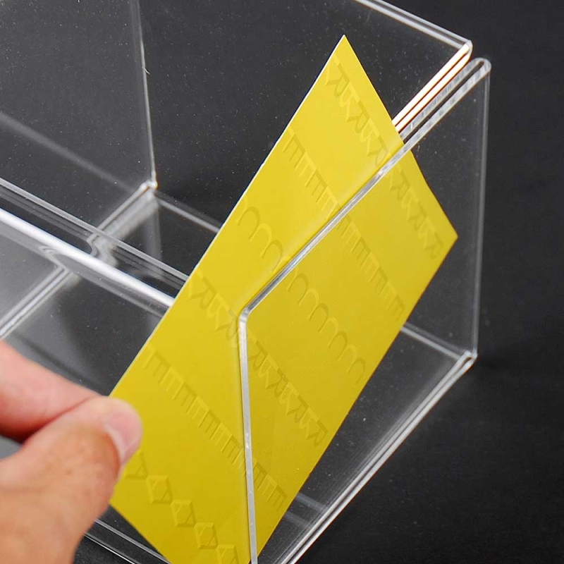 Porte-feuilles cubique en plexiglas transparent 4 faces. Conçu pour accueillir 4 feuilles d'information, menus, présentoirs, décorations ou supports de vente. Fabriqué avec soin par nos techniciens spécialisés. Vos produits et objets seront toujours soigneusement protégés et présentés avec la transparence d'un matériau noble comme le plexiglas.