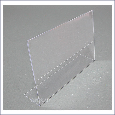 Porte visuel en format de table ou de comptoir, fabriqué uniquement sur mesure et avec une commande minimum de 500 pièces, en polystyrène de verre de faible épaisseur. Modèle très économique que nous pouvons faire de la mesure dont vous avez besoin.