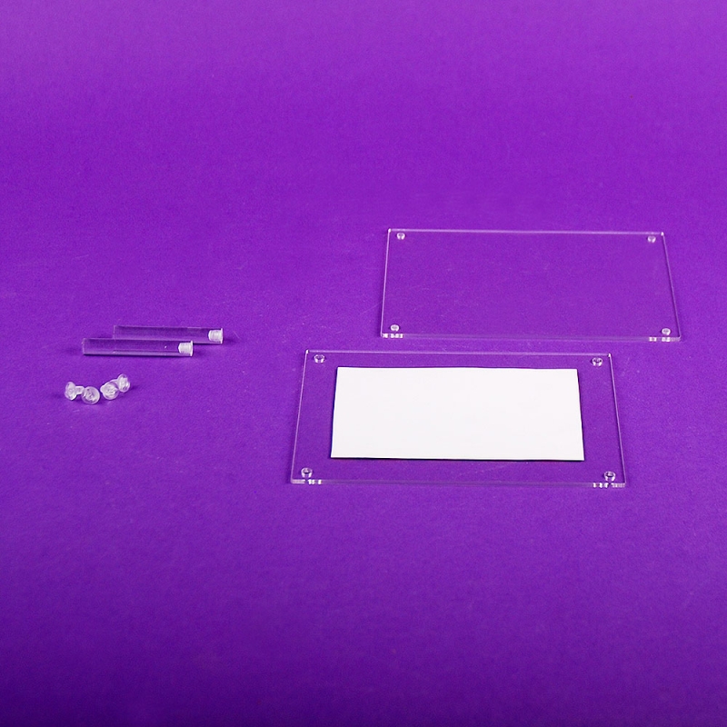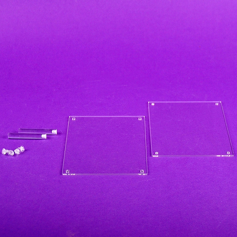 Fabriqué avec des plaques de méthacrylate transparent (Plexiglas®-pmma) de 3 mm d'épaisseur.