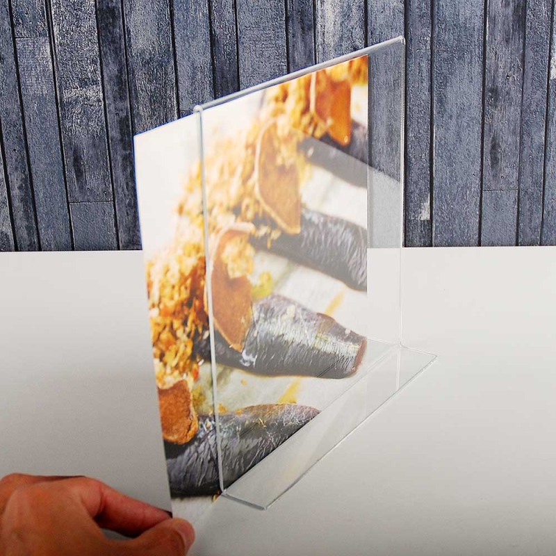 Chez Faberplast® nous sommes fabricants, si vous avez besoin de Porte visuel et portemenu plexiglas sur mesure (Plexiglas®-PMMA), contactez-nous et nous vous ferons parvenir rapidement votre budget. Nous travaillons n'importe quelle quantité et le tout en un temps record. Et maintenant, nous fabriquons également nos produits avec du méthacrylate 100 % recyclé.