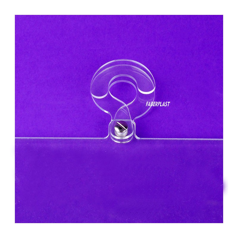 Porte visuel plexiglas transparent (plexiglas, PMMA) avec double cintre pour accrocher sur plusieurs médias et diverses formes cintre. Point précis de la vente, des expositions et d'autres événements.
