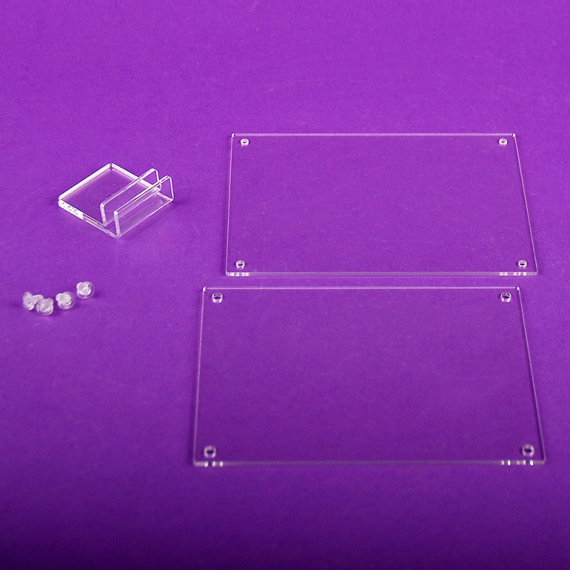 Fabriqué avec des plaques de méthacrylate transparent (Plexiglas®-pmma) de 3 mm d'épaisseur.
