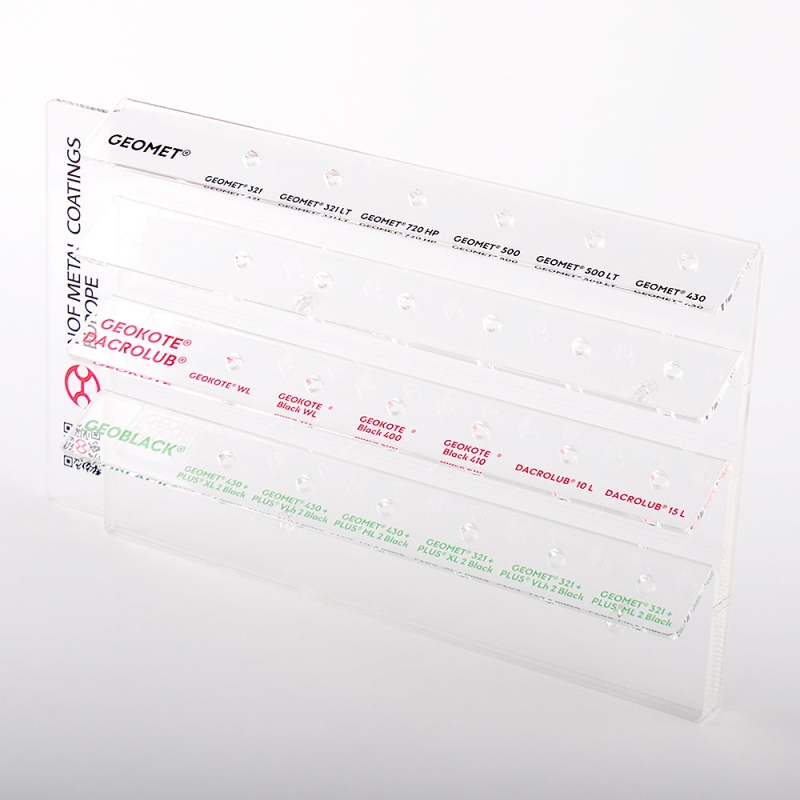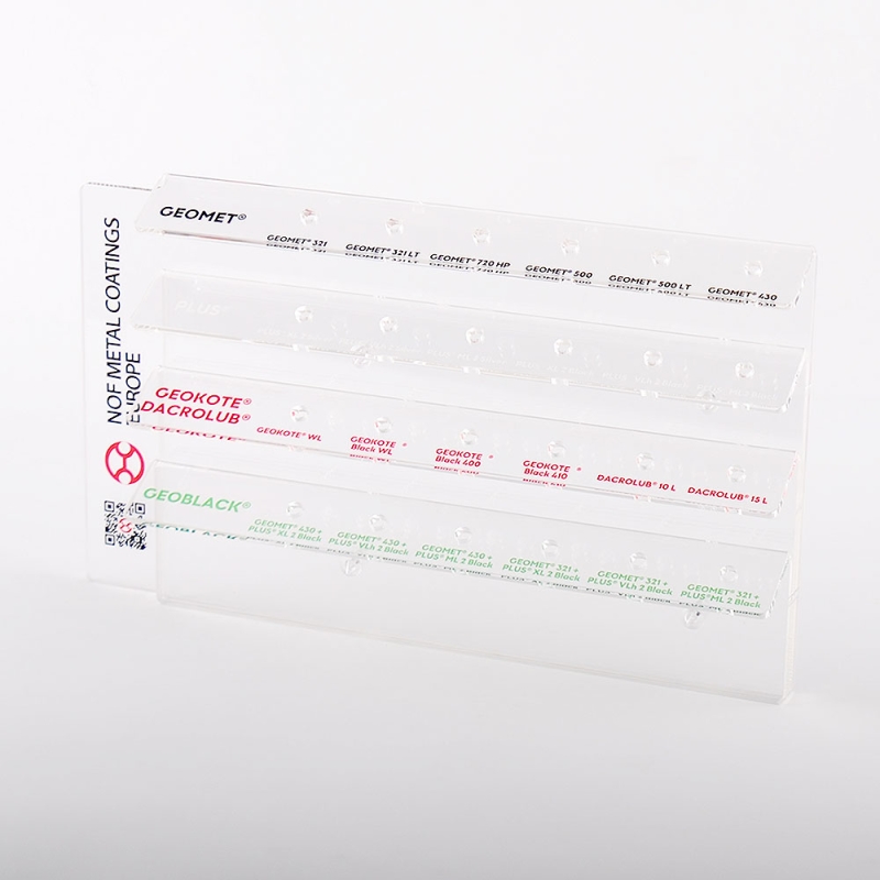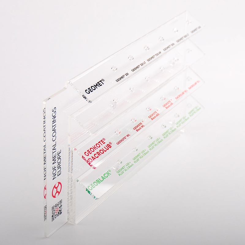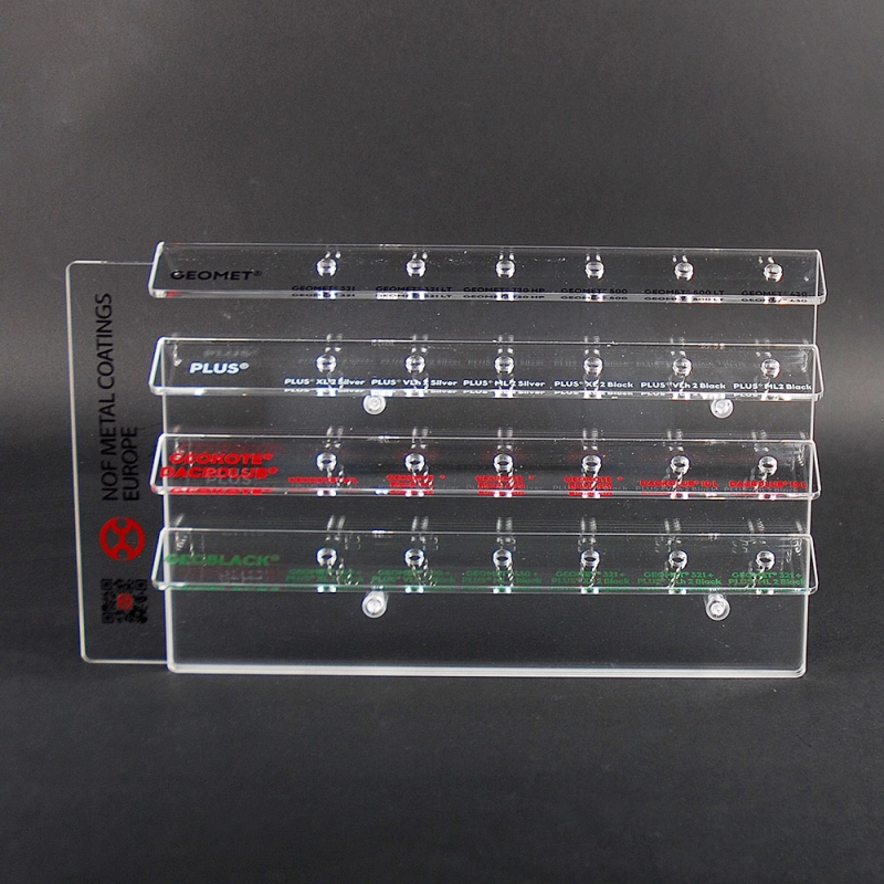 Présentoir en plexiglas acrylique sur mesure pour les produits NOF METAL COATINGS.