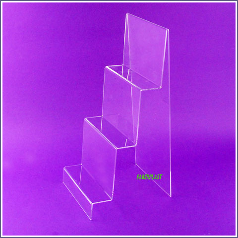 Présentoir plexiglas effectuée comme formaté pour la table, comptoir, évasion et également sur des surfaces. Modí¨le pour laffichage de produit au point de vente, magasins, foires et autres. Plaques í base de méthacrylate transparent (Plexiglas-PMMA) avec 3 étapes de produit différent.