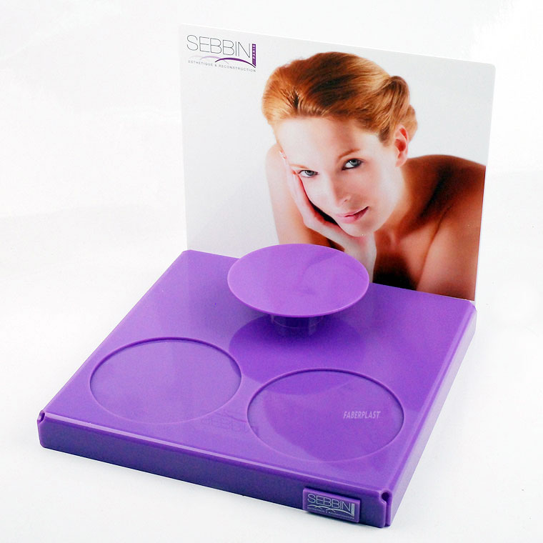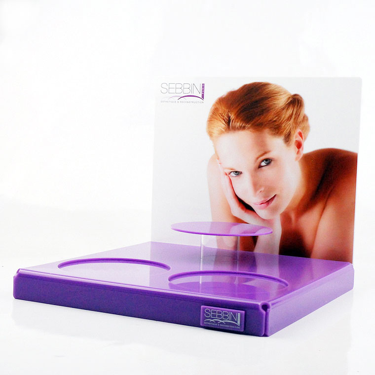 Présentoir en méthacrylate pour la société SEBBIN Esthetique & Reconstruction.