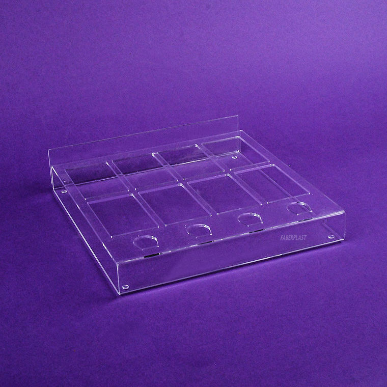 Présentoir plexiglas fabriqué sur mesure pour la marque de cosmétiques DERMACOL.