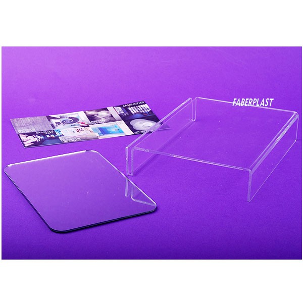 présentoir acrylique format de bureau, les comptoirs, les fenêtres ou autres. Avec miroir sur la base ranra arrière et placement du support.