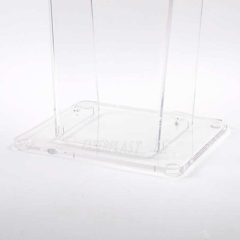 Chez Faberplast® nous sommes fabricants, si vous avez besoin de Pupitres plexiglas dévénements sur mesure (Plexiglas®-PMMA), contactez-nous et nous vous ferons parvenir rapidement votre budget. Nous travaillons n'importe quelle quantité et le tout en un temps record. Et maintenant, nous fabriquons également nos produits avec du méthacrylate 100 % recyclé.