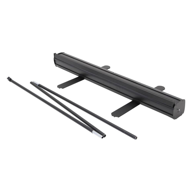 BANNER ROLL UP ECONOMY BLACK avec des profils en aluminium léger pour des images au rouleau imprimées numériquement.