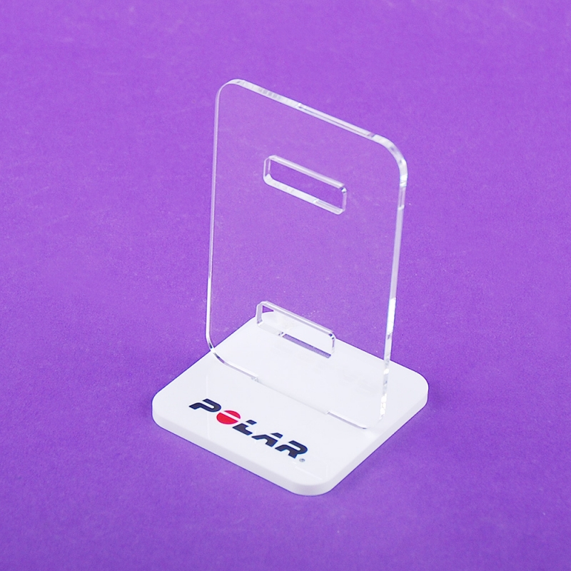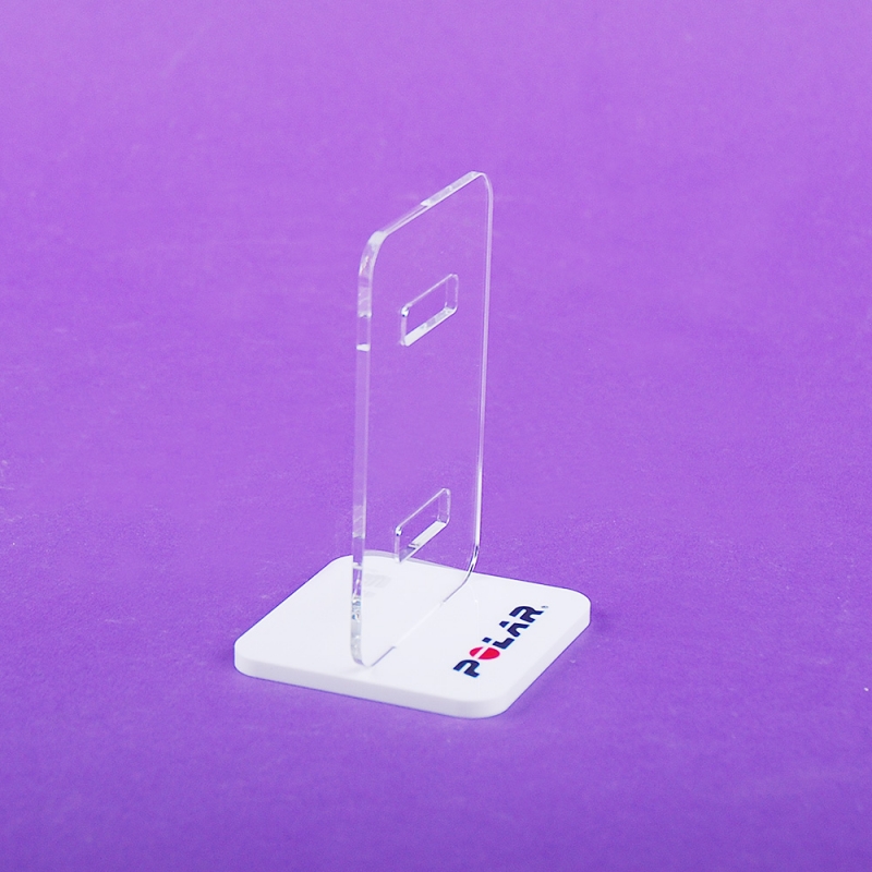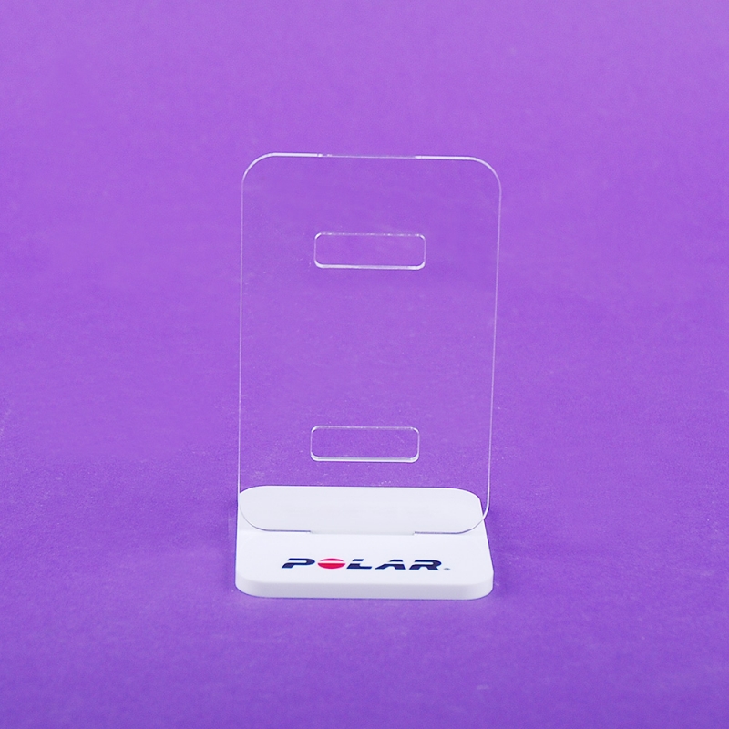 Support produit et présentoir en méthacrylate sur mesure pour la marque POLAR.