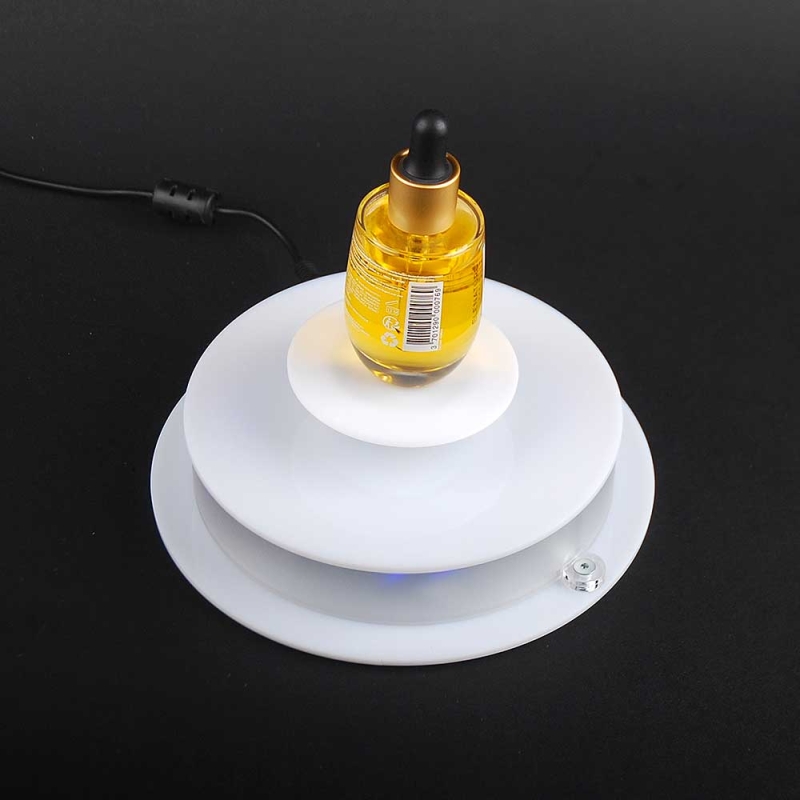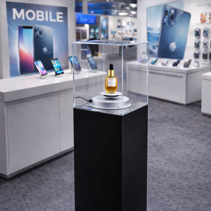Avec sa structure discrète et élégante, ce socle transforme tout produit en pièce maîtresse, apportant une valeur ajoutée visuelle et technologique au point de vente. La rotation fluide de l'objet, sans contact, convient à tous types d'objets jusqu'à 500 grammes.