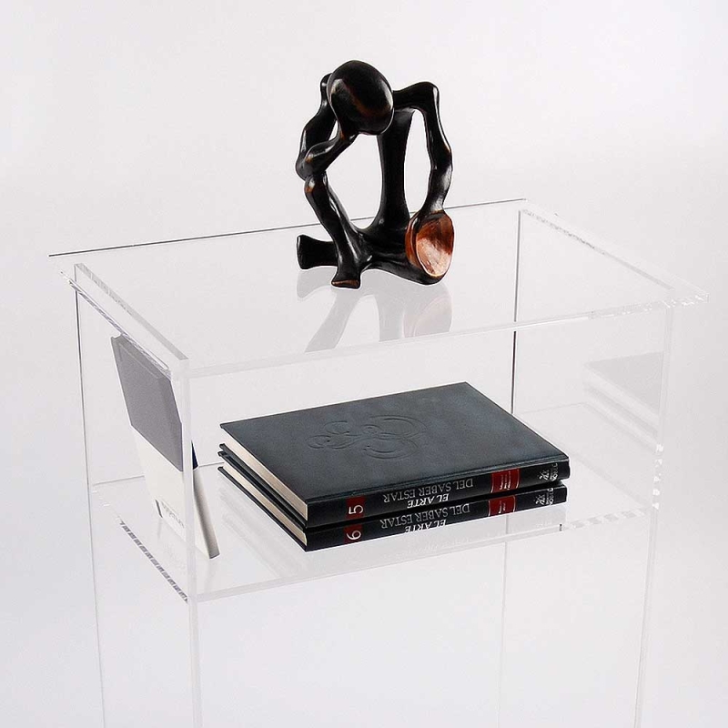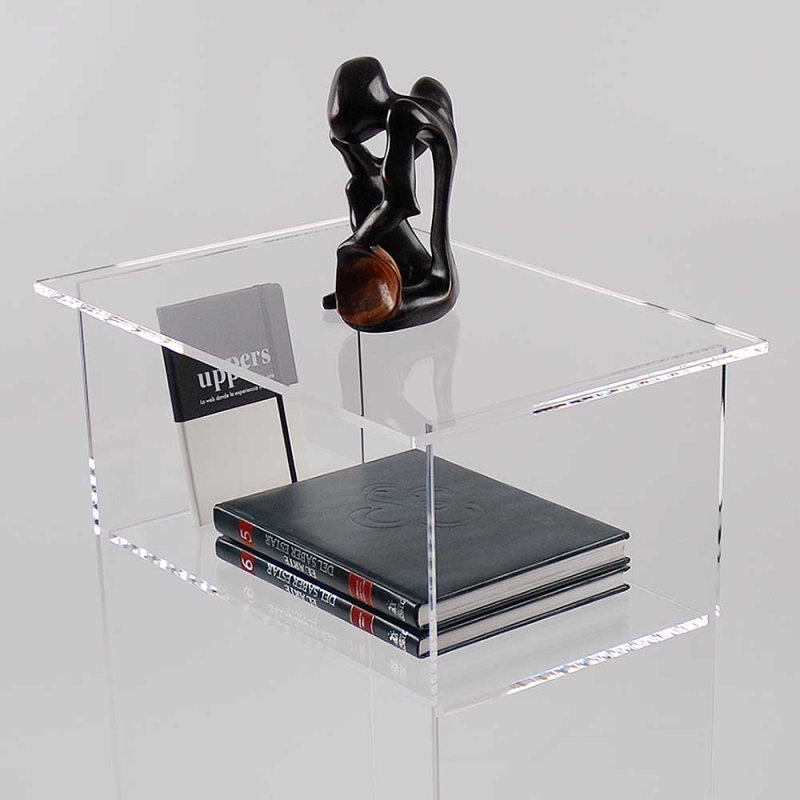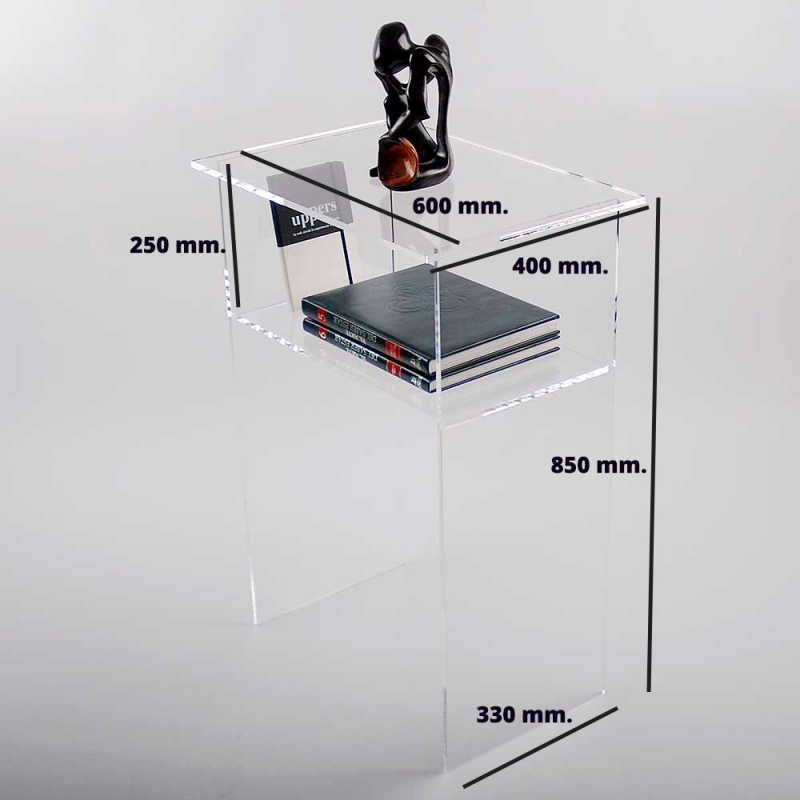 Fabriqué avec des plaques de méthacrylate de haute épaisseur (Plexiglas® - PMMA), construction robuste de manière artisanale avec des bords lisses et poli transparent. Modèle très pratique pour compléter tout environnement de manière discrète et environnements de toutes sortes à la maison, bureaux ou points de vente.