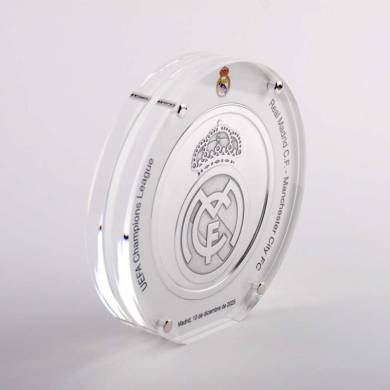 Sa forme ronde évoque l'équilibre, le prestige et la continuité, tandis que l'impression numérique du logo avec des encres ECO-UV durables de haute qualité offre une clarté et une profondeur de couleur exceptionnelles, permettant à la marque de se démarquer avec précision. Son esthétique moderne et sobre en fait un objet parfait pour les hommages officiels, les anniversaires, les compétitions sportives et la reconnaissance d'entreprise.