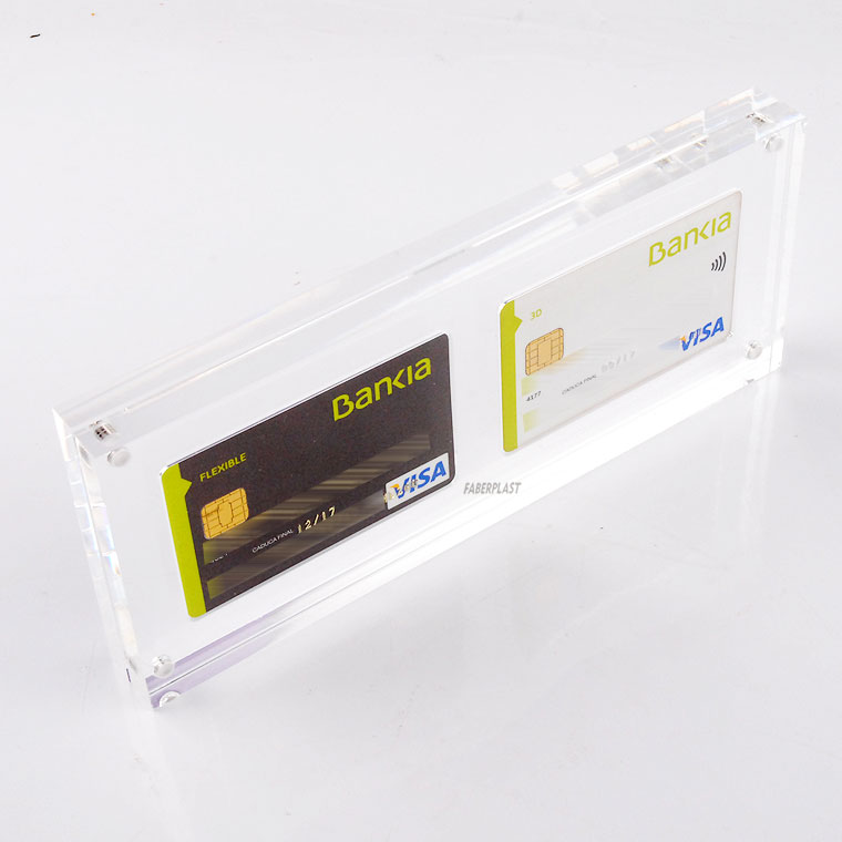 Tombstone plexiglas fait pour le format de carte bancaire standard. Double plaque faite de mehtacrylate transparente (Plexiglas-PMMA) reliées par des aimants à haute adhérence à chaque coin.