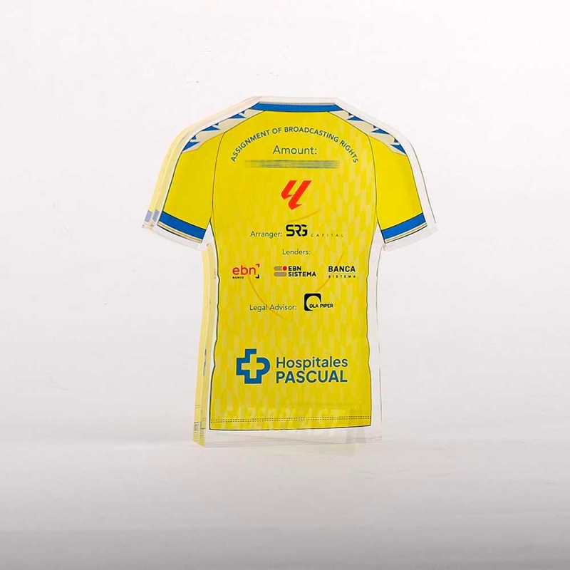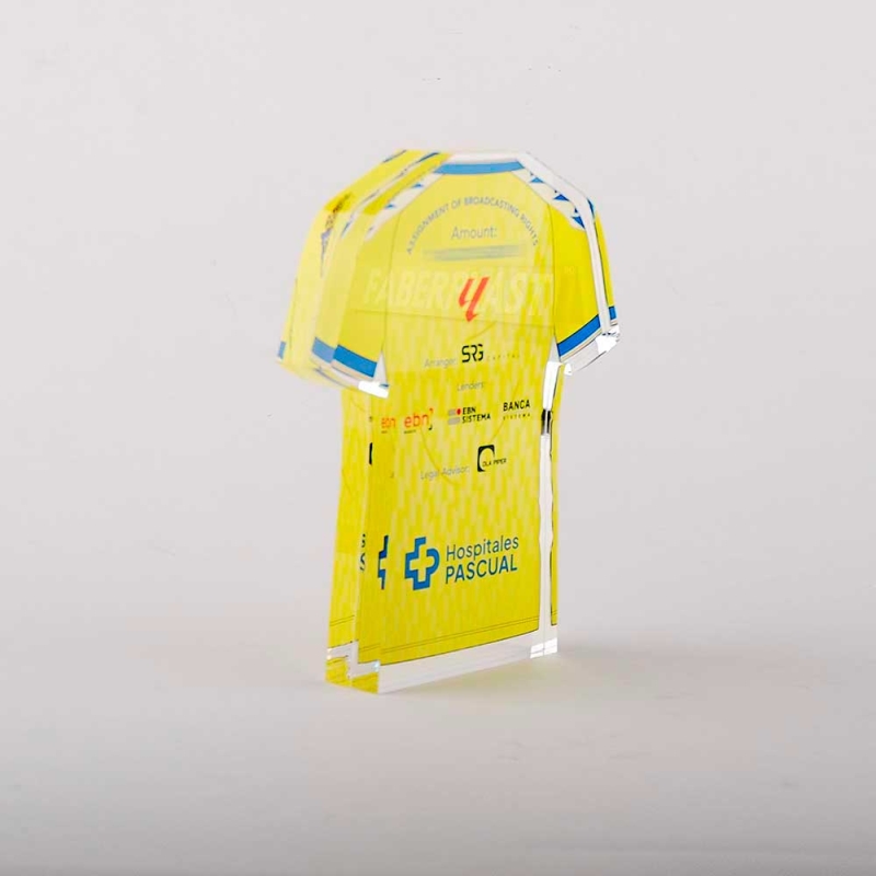 Union de deux pièces silhouettées par laser de dernière génération fabriquées de manière artisanale avec des plaques de méthacrylate (Plexiglas®-PMMA) de haute épaisseur dans nos propres ateliers. Avec l'impression numérique et les encres ECO-UV de haute qualité, grande netteté des couleurs d'une grande profondeur fidèle au dessin fourni par le client. Des bords lisses, polis et incolores avec une grande brillance grâce à nos processus de fabrication méticuleux. Une finition spécialisée et personnalisée pour un grand événement.