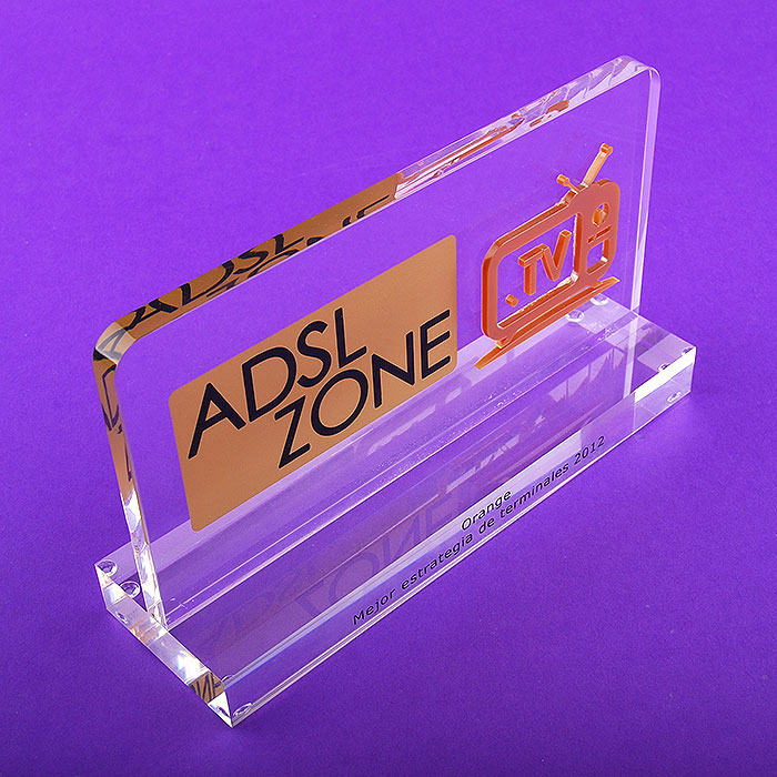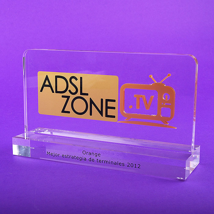 Des trophées plexiglas sur mesure pour la remise des récompenses ADSL ZONE à la société ORANGE.