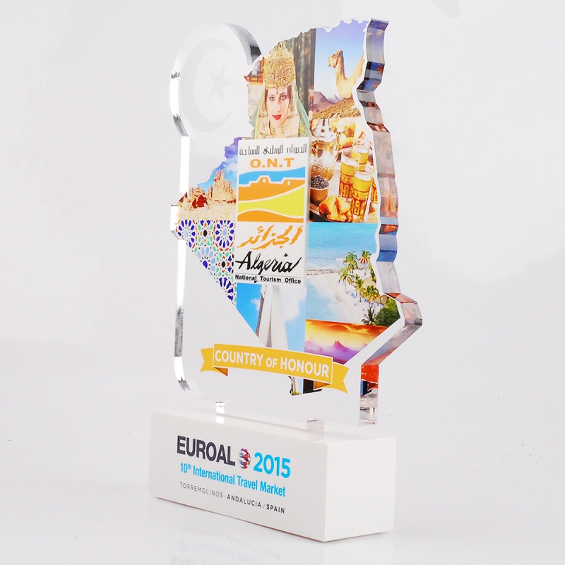 Trophée en plexiglas acrylique réalisé ad-hoc pour les prix EUROAL ALGERIA.