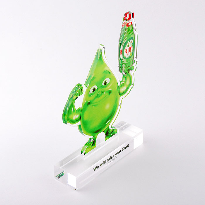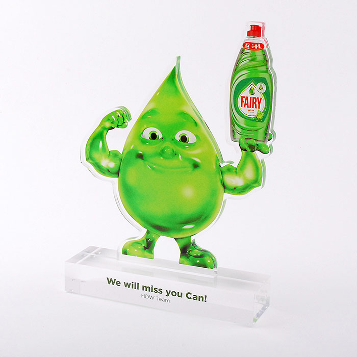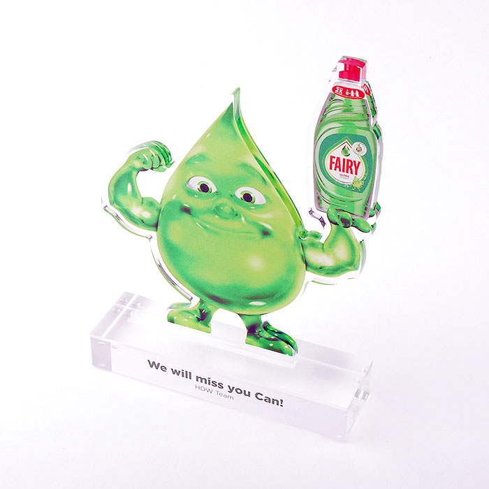 Trophée en méthacrylate fabriqué de manière personnalisée pour l'équipe de la marque FAIRY à l'occasion de l'événement HDW TEAM.