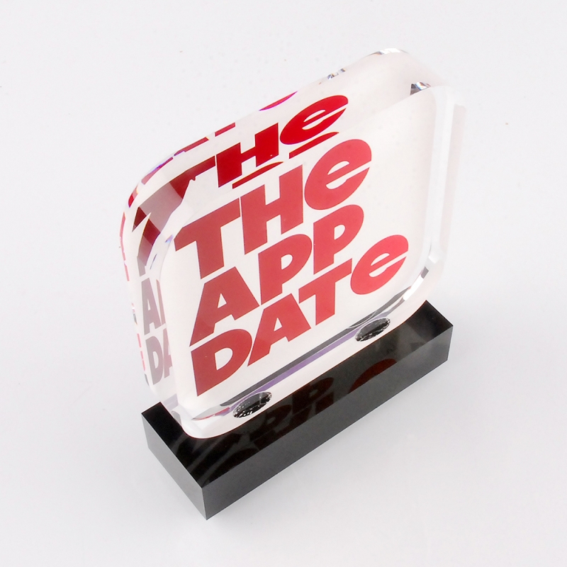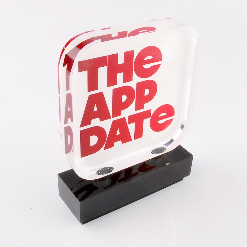 Trophée en plexiglas acrylique réalisé ad-hoc à l'occasion de la cérémonie de remise des prix THE APP DATE.