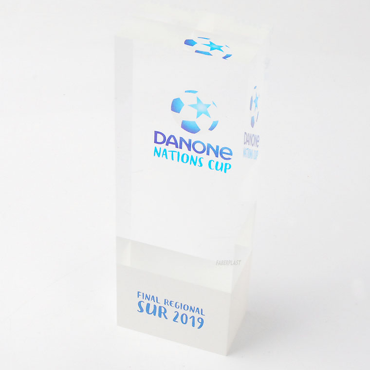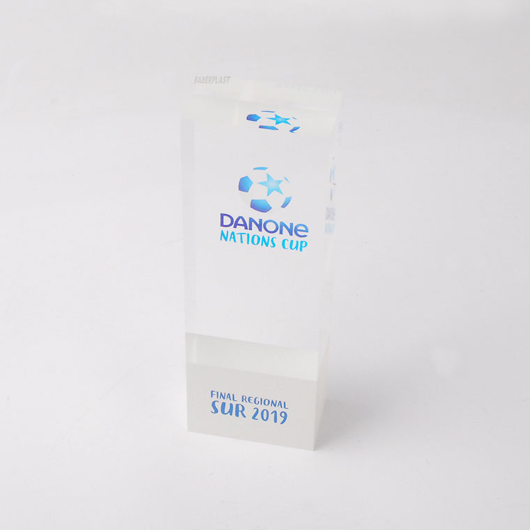 Bloc trophée en méthacrylate - PLEXIGLAS élégant et solide, fabriqué sur mesure pour la prestigieuse compétition de football pour enfants DANONE NATIONS CUP.