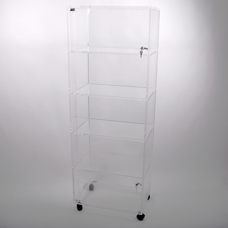 Vitrine en plexiglas 5 ÉTAGÈRES avec roulettes