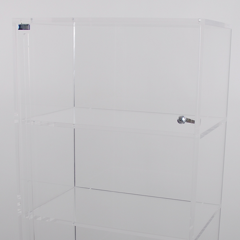 Vitrines de grand format fabriquées à la main en plaques de perspex acrylique (Plexiglas®-PMMA) de grande épaisseur, 5 étagères avec double verrouillage et roues avec freins.