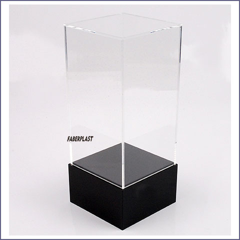 Vitrine plexiglas avec base en noir. Sur mesure avec des plaques noires et acrylique plexi transparent (plexiglas, pmma) pour la pose de tous types de pií¨ces et le point de vente des produits.