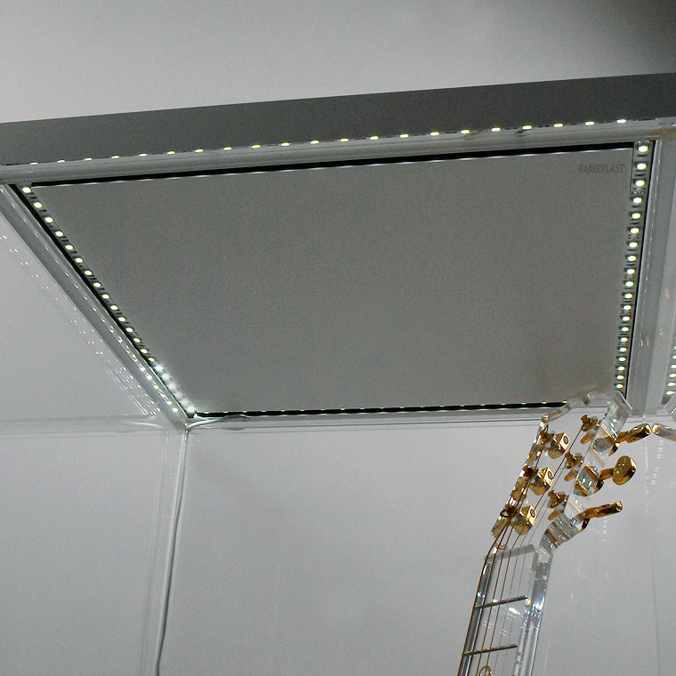 Panneaux en méthacrylate transparent (Plexiglas-PMMA) et Foamalyx blanc mat (mousse de PVC). Ils comprennent l'éclairage économe en énergie supérieure en utilisant des bandes de LED.