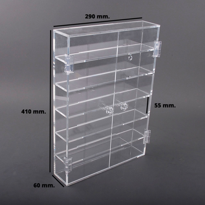 Dimensions de la vitrine : Largeur : 290 mm. Profondeur : 60 mm. Hauteur : 410 mm.